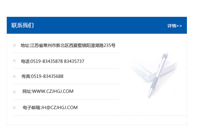 傳真:0519-83435688    郵編:213135    網址:WWW.czjhgj_com.jiepinshop.com    電子郵箱:JH@czjhgj_com.jiepinshop.com